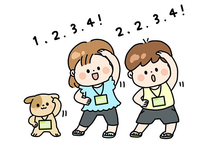 猛暑の影響で思い切り水遊びが出来る時間が限られていますが、その分室内でたくさん身体を動かし遊んでいるひばり組です。音楽に合わせて行うリズム遊びや体操が人気で、「何して遊びたい?」と聞くと「リズムやりたいー!」と必ず声が上がっています。回数を重ねるごとに身体の使い方が上手くなっており、1人で行うリズムの他にペアや数人で行う内容にも挑戦しているところです。天候と相談しながら水遊びやプール、ゲーム等室内外で身体を動かし遊びながら、暑い夏を乗り切っていけたらと思います。<はと組>