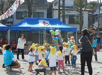 たまごの中から、「いないいないばあー」今年は月齢も高くコンビカーを押したり階段登りも出来ました。初めての運動会、お母さんと頑張りました