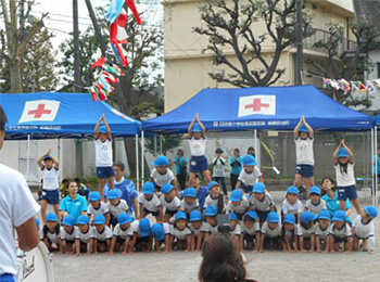 1人ずつの技から始まって、2人・3人・6人と人数が増えて大きな技を披露したはと組さん。