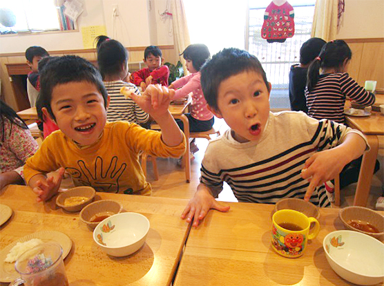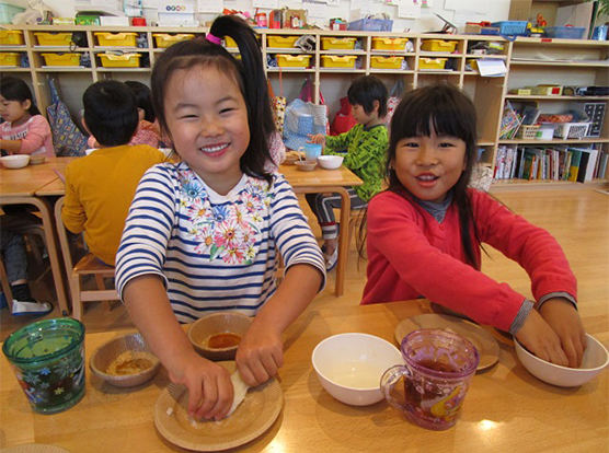 きなこ味としょうゆ味で食べました!!自分たちでついたもちは味が格別のようで「おいしかったよー!!」とみんな言っていました!中にはきなことしょうゆの食べが子ども達の中で流行っていたようです。