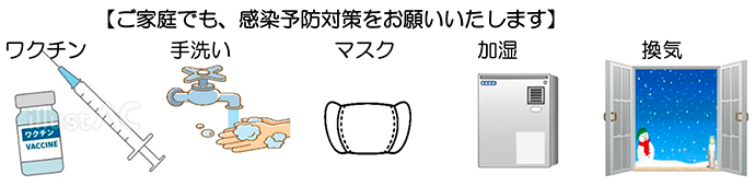 寒さも厳しくなるこれからの季節は、気温が低下して空気も乾燥するため、一年の中でウイルスが最も活発化しやすい時期でもあります。感染症対策の基本は、どのウイルスに対しても予防が大切です。家族みんなで元気に年越しを迎えたいですね。