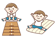 毎週水曜日、4・5歳児を対象に体操の指導があります。マット・鉄棒・跳び箱・縄跳びなどの様々な競技に触れ、扱い方や動き方を教えてくれます。体を動かす楽しさが感じられるよう、様々な競技に取り組んでいます。