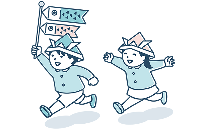 こどもの日は、大きなこいのぼりを飾って『こいのぼりのように大きく、大きく、元気に育ってほしい』という願いを込めてお祝いする節句です。昔は『端午の節句』や『菖蒲の節句』と呼ばれ、この時期に生える菖蒲を使って邪気を払う行事が行われてきました。その後、武士の時代になると、菖蒲を『尚武』『勝負』と関連づけて、子どもの出世や健康を願う行事となったようです。