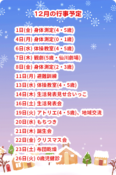 保育園は28日まで開園しています。12月29日(金)~1月3日(水)は休園となります。