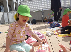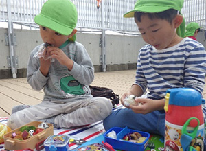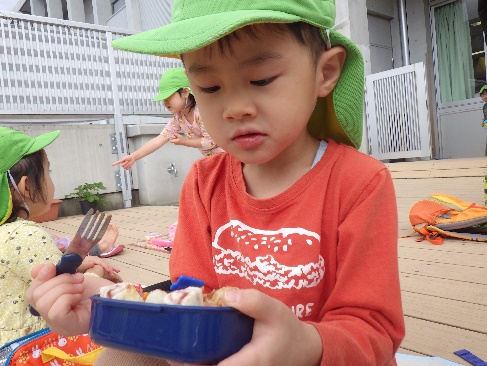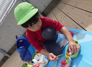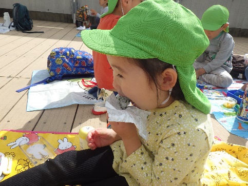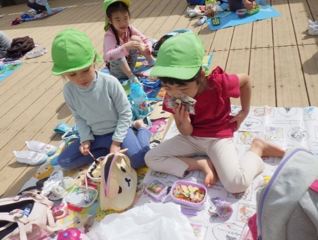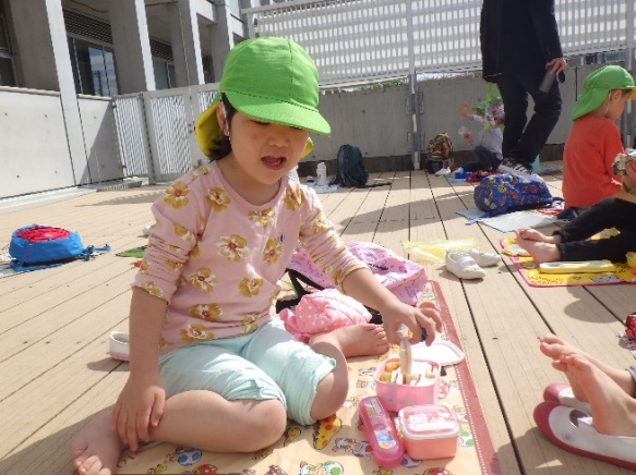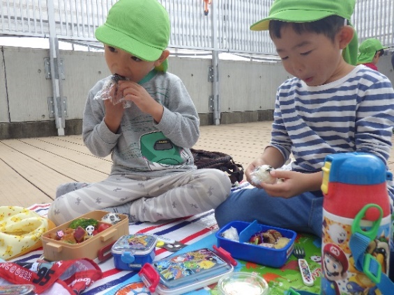 テラスで食べるお弁当は格別‼みんなキラキラの笑顔で美味しそうに食べていました。