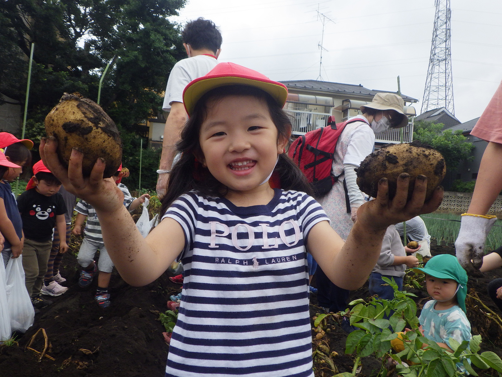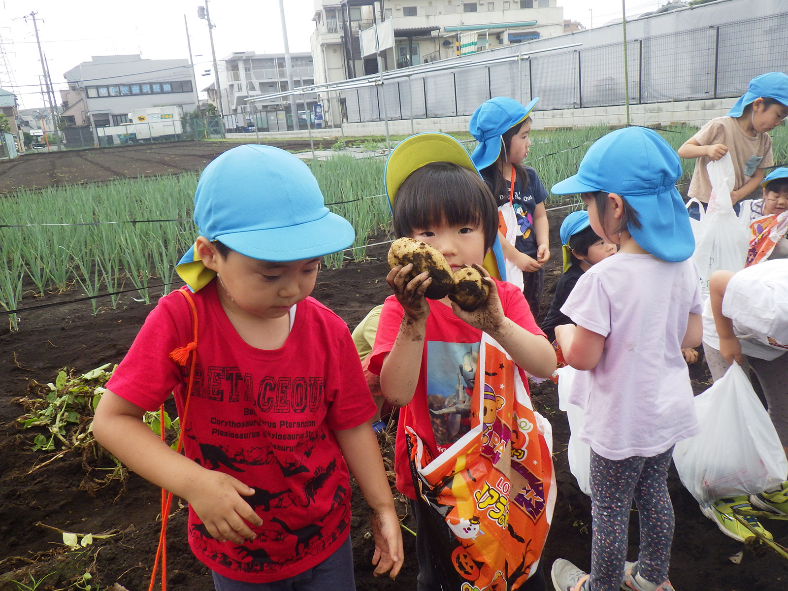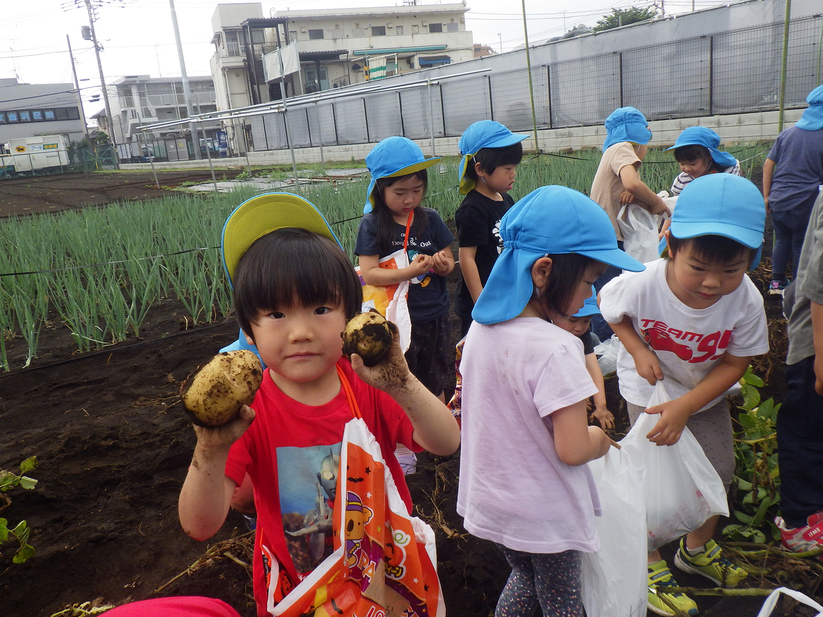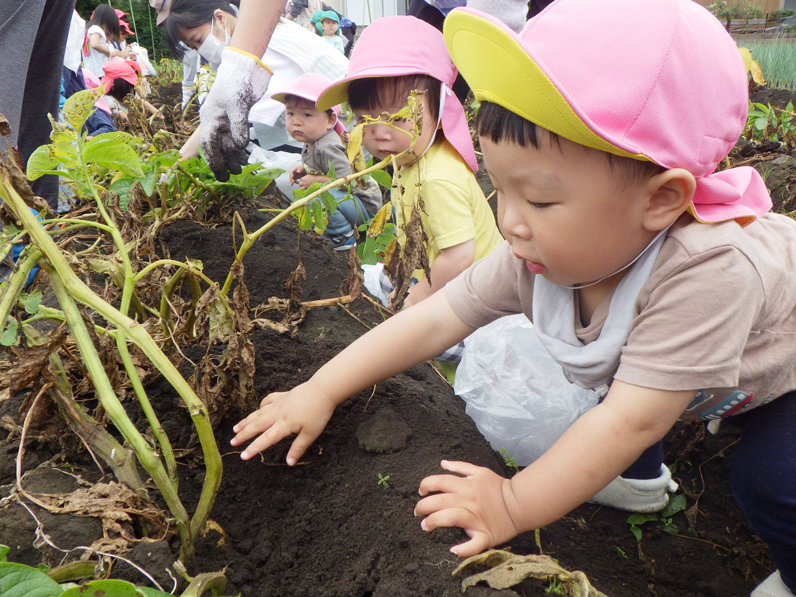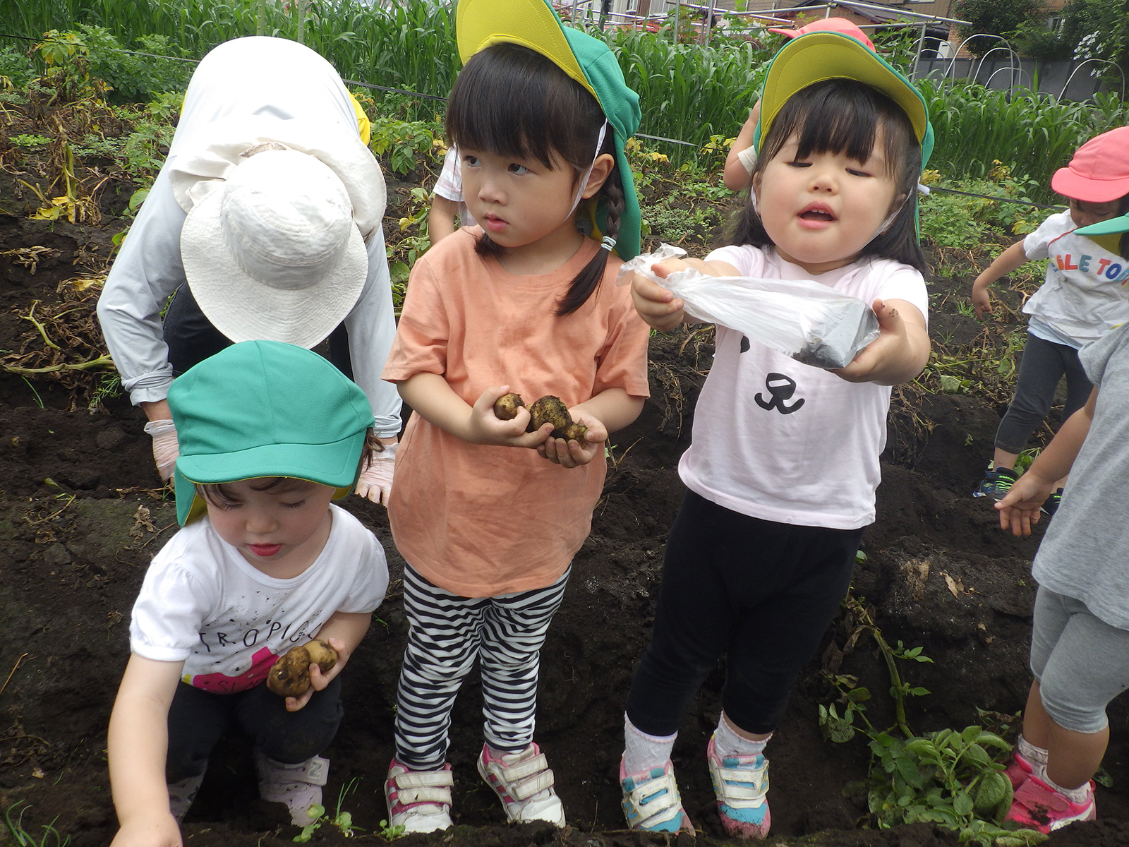 今年も豊作で、大きなじゃがいもを手にして子どもたちは目を輝かせていました。畑の土に触れ、手や顔を真っ黒にさせながら夢中になっている姿が印象的でした。
