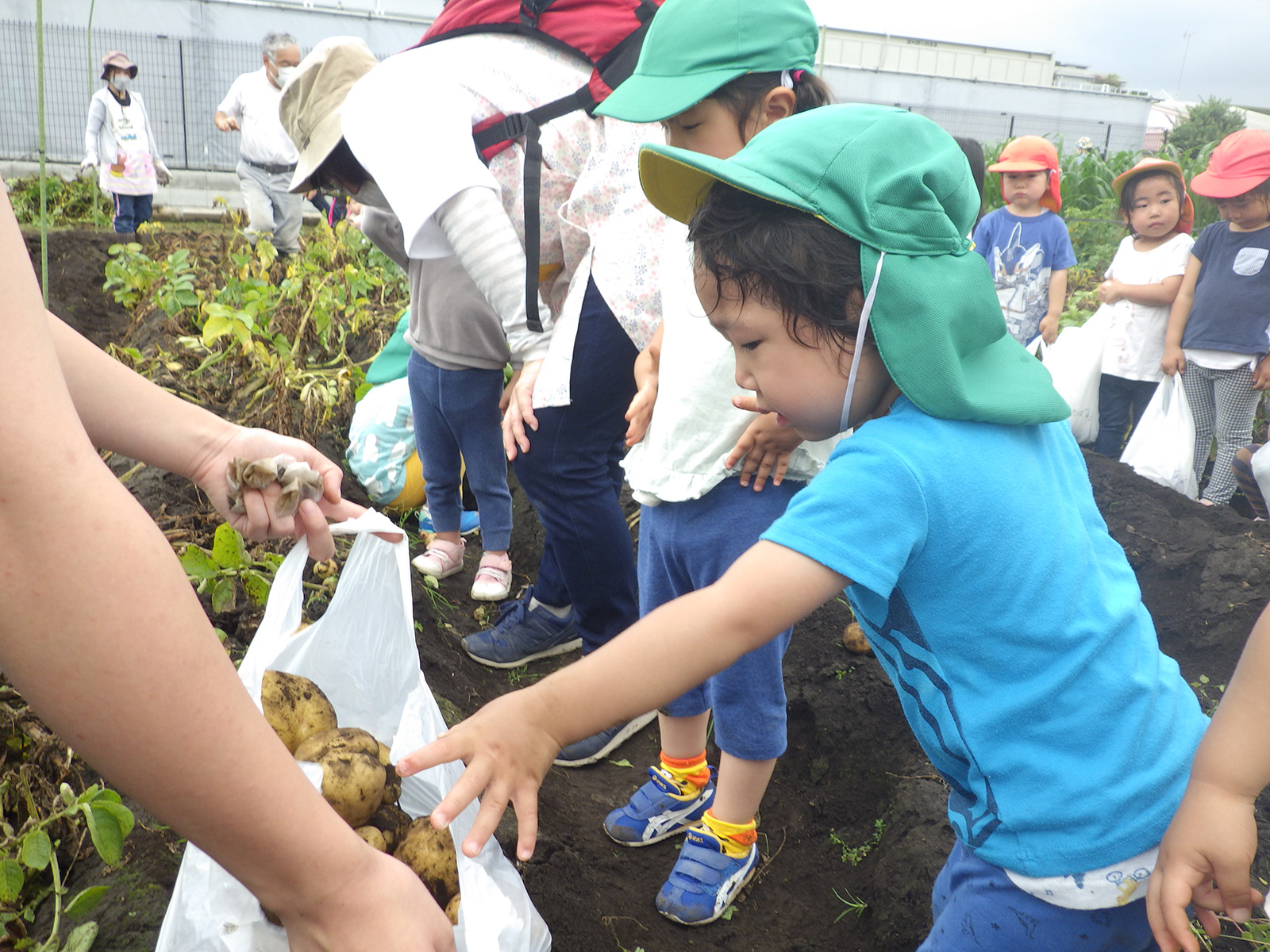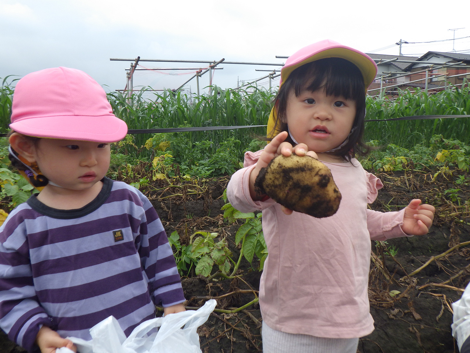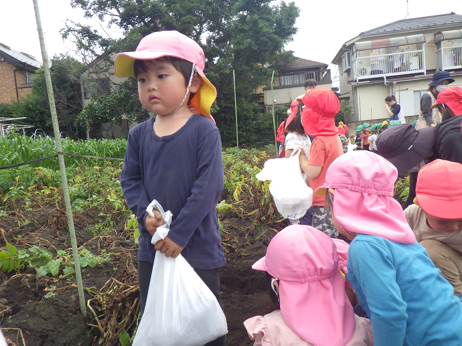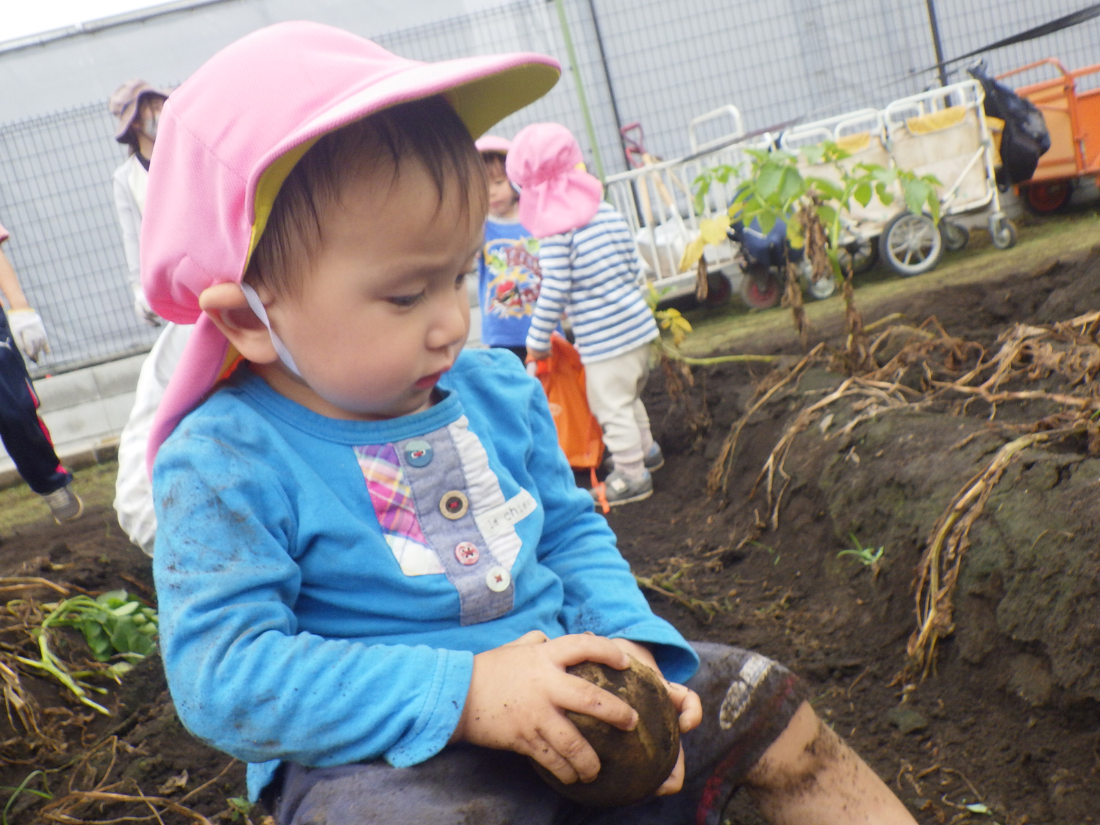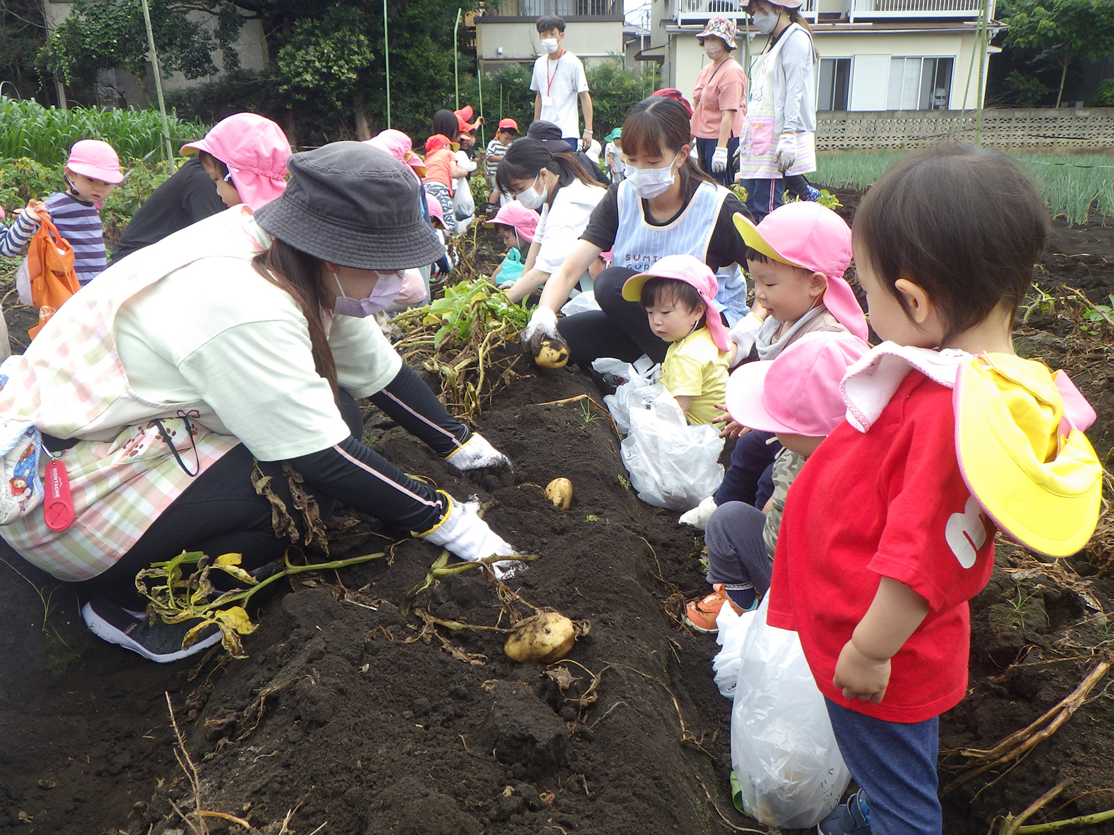 今年も豊作で、大きなじゃがいもを手にして子どもたちは目を輝かせていました。畑の土に触れ、手や顔を真っ黒にさせながら夢中になっている姿が印象的でした。
