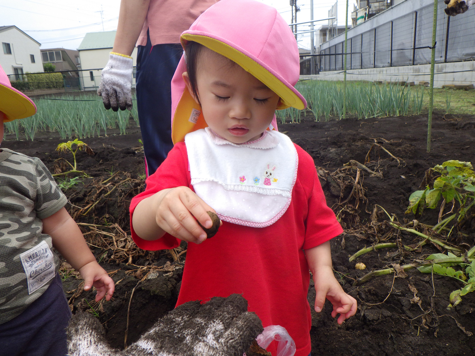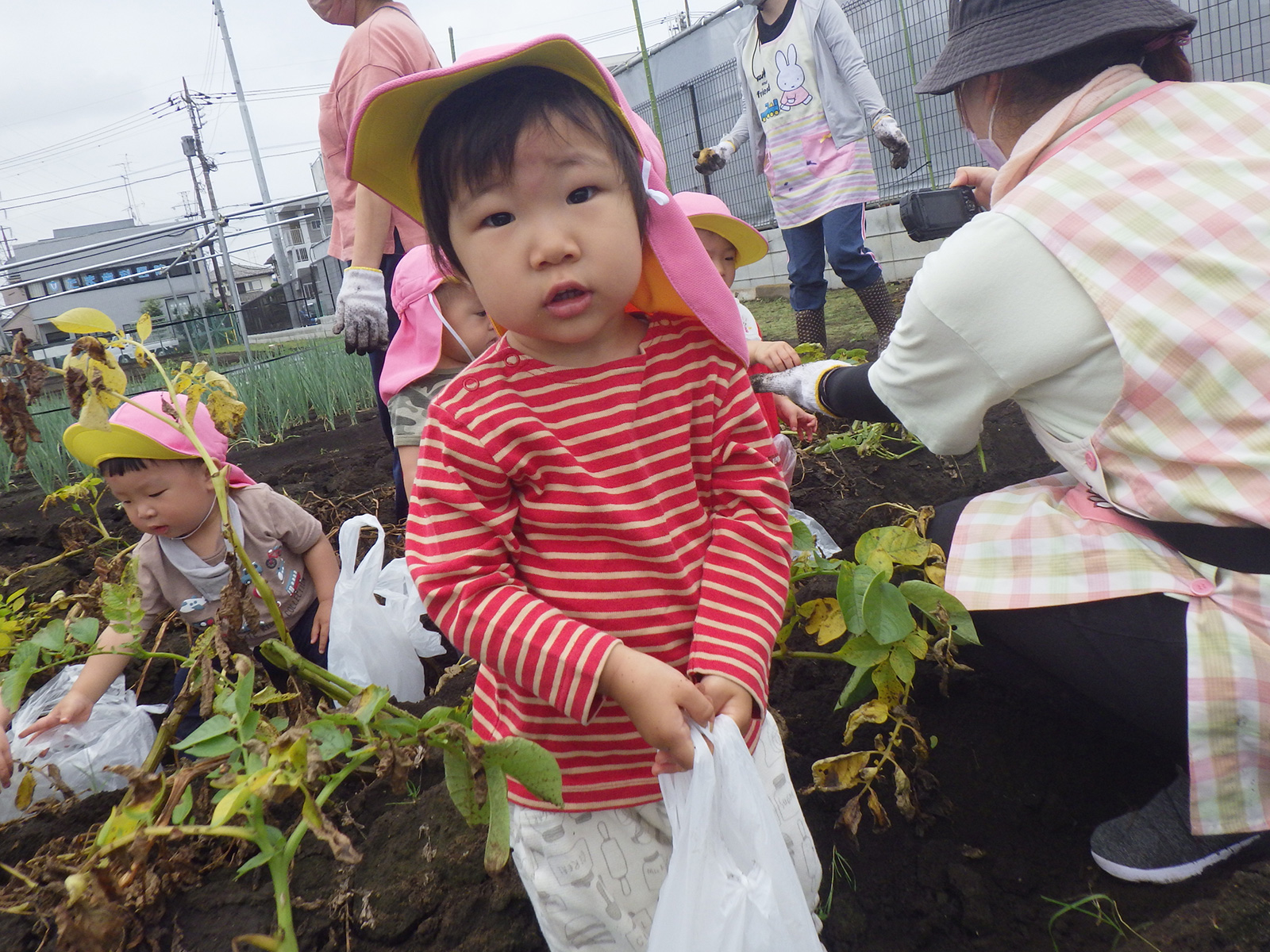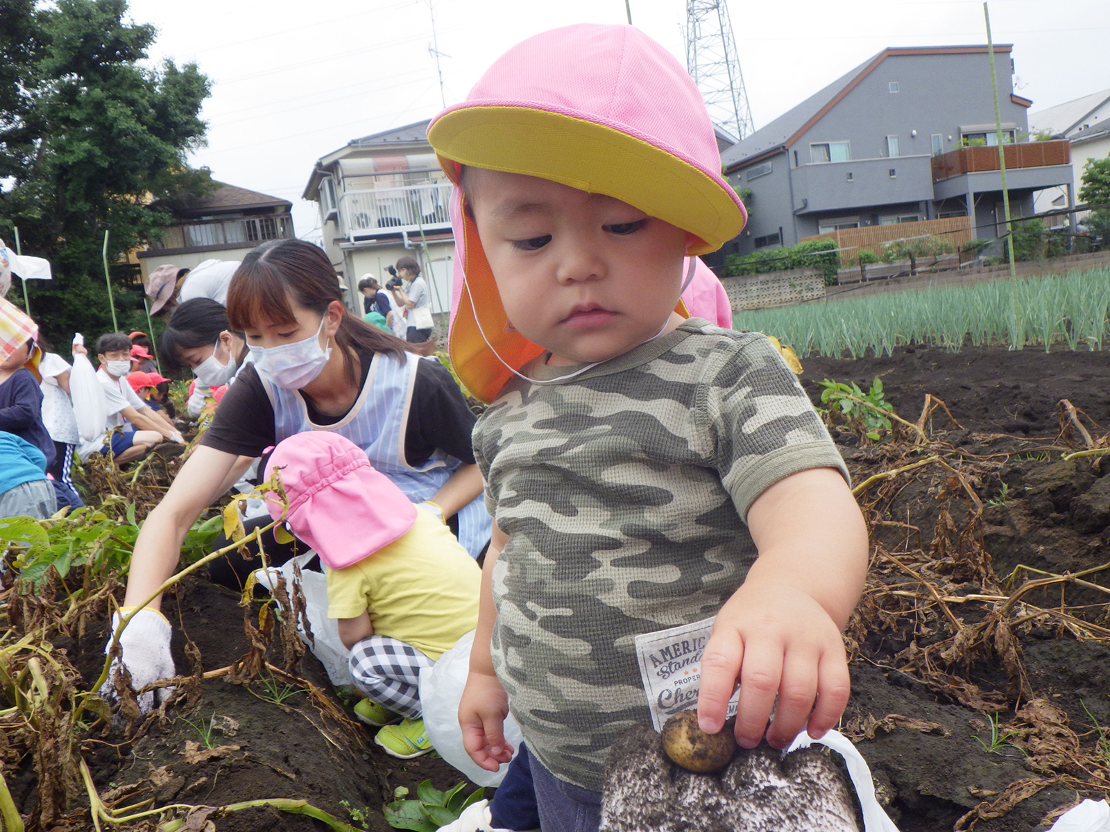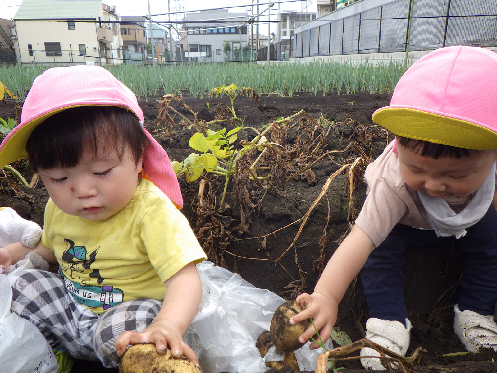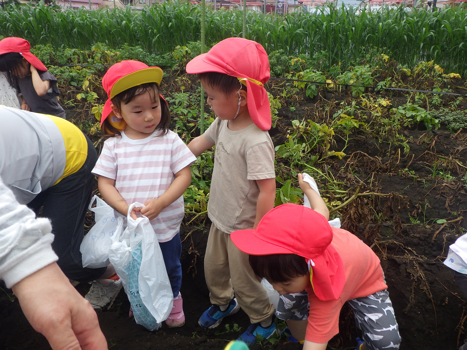今年も豊作で、大きなじゃがいもを手にして子どもたちは目を輝かせていました。畑の土に触れ、手や顔を真っ黒にさせながら夢中になっている姿が印象的でした。