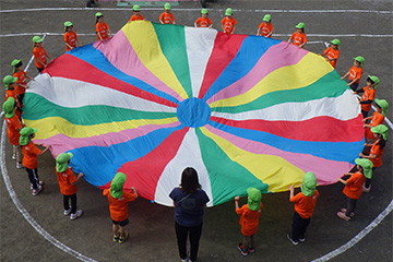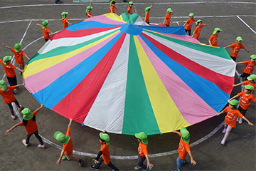 どのクラスの子どもたちも、種目によっては友だちと競いあったり、また時には友だちと協力したりしながら、最後まで力いっぱい楽しんでいました。