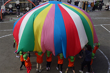 今年は、久しぶりに3,4,5歳児合同で行ったため、異年齢のお友だちやたくさんの保護者の方に見守られながら運動会を行うことができました。