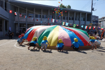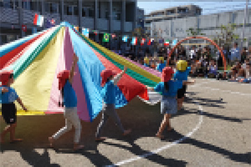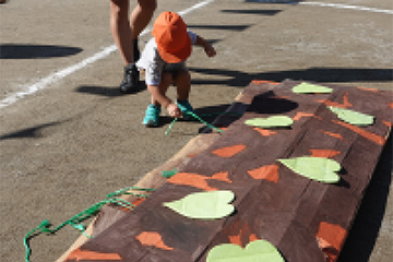クラスの種目では、普段の保育で慣れ親しんでいるものを行い、親子競技では保護者の方と力を合わせて頑張りました。一人ひとりが持てる力を出しながら、楽しい雰囲気で運動会をすることができました。