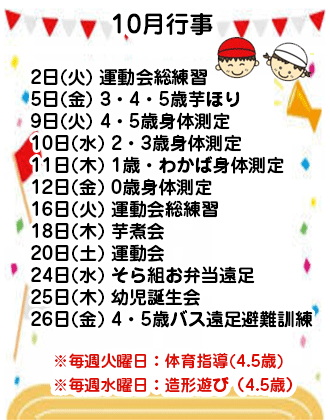 さて今年度の運動会は、あおばインターナショナルスクールをお借りして、開催することとなりました。広い空間で親子で楽しむ運動会!今、運動会に向けエネルギー全開です。当日は、沢山の方の応援を心よりお待ちしております。