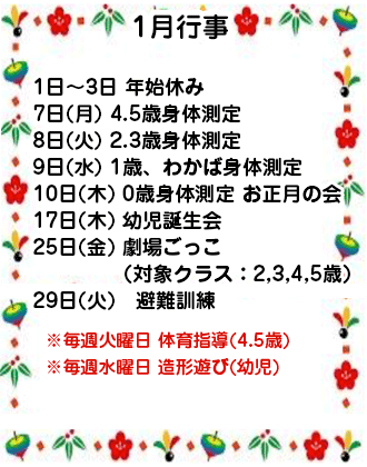 本年も、職員一同一丸となって保育を進めてまいります。保護者の皆様には、色々ご協力いただくことと思いますが宜しくお願い致します。
