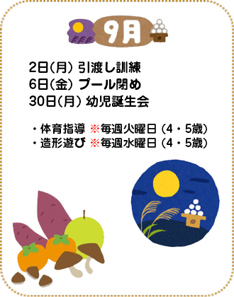 いつの間にかセミの声がコオロギの声に変わり、季節はどんどん秋に近づいているのが感じられるようになりました。外に出るとまだまだ汗ばむ時ですが、残り少なくなったセミを追いかけわかばっこ達は、木を見上げ「こっちにいるよ」「あっち あっち」と興奮している声が事務所まで届いてきます。