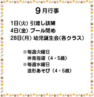 ※ コロナウイルスの状況により、行事内容に変更があります。