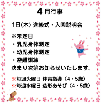 ※ コロナウイルスの状況により、行事内容に変更があります。