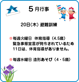 ※ コロナウイルスの状況により、行事内容に変更があります。