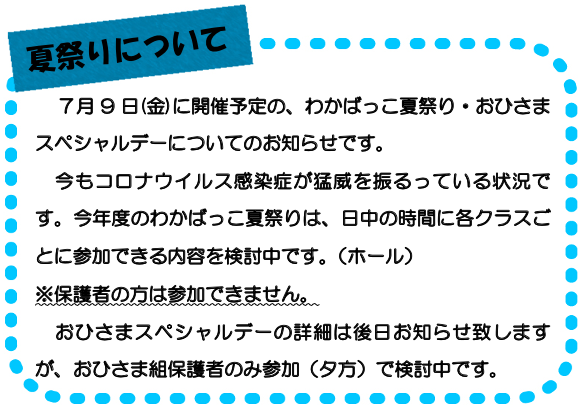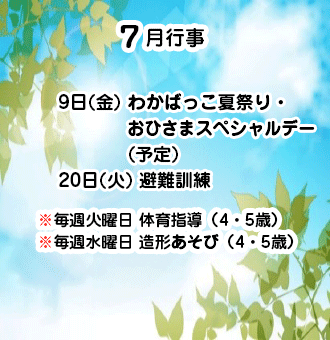 ※ コロナウイルスの状況により、行事内容に変更があります。