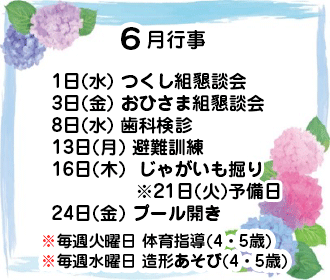 ※ コロナウイルスの状況により、行事内容に変更があります。