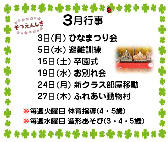 今年度も残りわずか。1年を振り返り、一人ひとり大きく成長したこどもたちの姿を嬉しく、頼もしく感じます。15日には年長さんにとって最大のイベントである卒園式が行われます。
